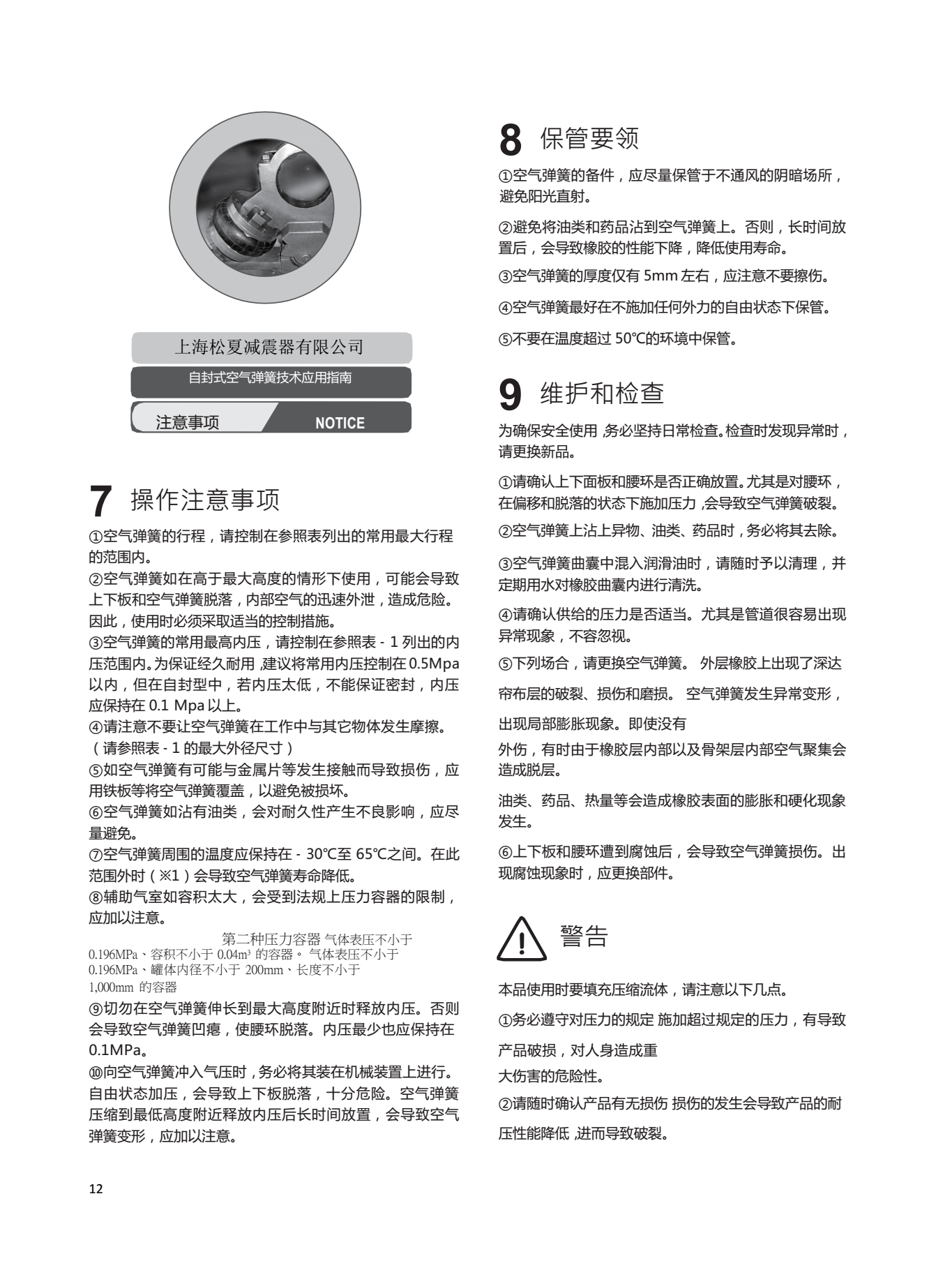 6、高度可控制,如與高度調整閥并用,對不同負載可保持恒定高度。